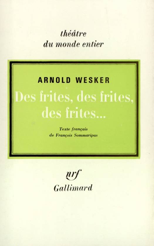 En 1950, Arnold Wesker fait son service militaire dans la Royal Air Force, et observe avec une attention fascinée la manipulation du matériel humain pendant les semaines d'entraînement. C'est cette expérience personnelle qui fournit le cadre de Des frites, des frites, des frites... Mais pas plus que La Cuisine n'était un documentaire sur les restaurants, Des frites n'est une-tranche-de-la-vie militaire. Comme la cuisine d'un grand restaurant, une base militaire de la R. A. F. est pour Wesker un microcosme qui entretient avec le monde extérieur un rapport métaphorique. Si le théâtre est métaphore, il doit donner à voir. La force de Wesker dans Des frites... est d'avoir pensé sa démonstration en termes scéniques, d'avoir joué sur la géométrie des lieux, la précision stylisée des exercices de groupe, le jeu d'automates des chefs figés dans leurs fonctions... Par les juxtapositions, les répétitions, les substitutions, les raccourcis, le théâtre accentue l'aspect ballet mécanique qu'a l'entraînement militaire. La métaphore, on le voit, fonctionne dans les deux sens. Car l'armée, avec son souci de rendre vi ible, en un lieu utopique, le pouvoir, est déjà un théâtre.