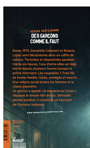 Rome, 1975. Donatella Colasanti et Rosaria Lopez sont découvertes dans un coffre de voiture. Torturées et séquestrées pendant trente-six heures, l’une d’entre elles est déjà morte depuis plusieurs heures lorsque la police intervient. Les coupables ? Trois fils de bonne famille, riches, protégés et nourris d'un mépris social envers les femmes et la classe populaire.