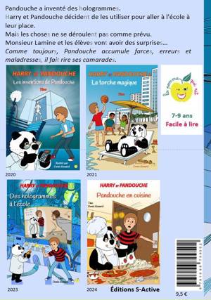 Pandouche a inventé des hologrammes. Harry et Pandouche décident de les utiliser pour aller à l'école à leur place. Mais les choses ne se déroulent pas comme prévu. Le professeur monsieur Lamine et les élèves vont avoir des surprises… Comme toujours, Pandouche le scientifique génial accumule erreurs et maladresses et fait rire son lecteur.