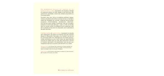 Le livre est aussi une réfl exion sur le temps long des deux derniers siècles qui ont vu le corps civique s’élargir à de nouveaux groupes, malgré ceux qui, étant au pouvoir, n’entendent pas le partager. Il s’inscrit également dans la séquence actuelle d’injonction à l’identité nationale, qui rebattent toutes les identités individuelles et leur instrumentalisation dans le champ politique.