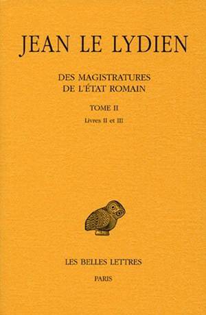 Avec son histoire de la carriere administrative, Jean Le lydien propose une histoire de l'Empire d'Orient jusqu'a Justinien dont il est le contemporain. Si le sujet en est juridique, l'ouvrage n'en a pas moins une envergure historique, politique et litteraire. En effet, la prose de Jean Le Lydien abonde en remarques personnelles, comme la virulente critique des politiques interieure et exterieure de Constantin ou le panegyrique d'Anastase. Les multiples digressions sont remarquables et revelent le talent de l'auteur: le portrait de Jean de Cappadoce, l'ennemi jure de l'auteur, compare a Briaree, monstre mythologique aux cent bras, exercant sa fureur sur la ville qu'il administre, l'incendie de Constantinople, sont autant de morceaux de bravoure, auxquels s'ajoutent le portrait de Cesar et la reflexion sur la tyrannie. Le tome II de notre edition de Jean Le Lydien, regroupe en un volume les livres II et III des Magistratures de l'Etat Romain. La precieuse notice generale est a elle seule une somme d'erudition: elle offre un panorama precis de la periode ainsi que tous les renseignements necessaires a une bonne intelligence de ce texte riche en allusions non seulement historiques mais aussi litteraires. Les grandes figures du texte, les empereurs Constantin, Theodose ou Justinien, mais aussi Zenon ou Jean de Cappadoce, font l'objet d'une biographie succincte, tandis que l'organisation des magistratures, leur hierarchie et les reformes initiees sont analysees en detail. L'ouvrage est en outre enrichi d'une bibliographie selective, d'un Index Nominum ainsi que d'un Index Variorum Potiorum. 1er tirage 2006