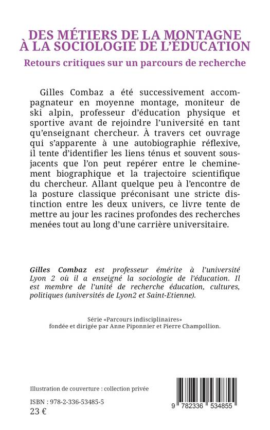 Gilles Combaz a été successivement accompagnateur en moyenne montage, moniteur de ski alpin, professeur d'éducation physique et sportive avant de rejoindre l'université en tant qu'enseignant- chercheur. À travers cet ouvrage qui s'apparente à une autobiographie réflexive, il tente d'identifier les liens ténus et souvent sous-jacents que l'on peut repérer entre le cheminement biographique et la trajectoire scientifique du chercheur. Allant quelque peu à l'encontre de la posture classique préconisant une stricte distinction entre les deux univers, ce livre tente de mettre au jour les racines profondes des recherches menées tout au long d'une carrière universitaire.
