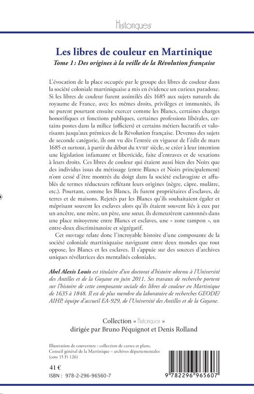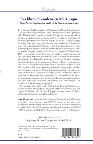 Si les libres de couleur furent assimilés dès 1685 aux sujets naturels du royaume de France, avec les mêmes droits, privilèges et immunités, ils ne purent pourtant ensuite exercer comme les Blancs, certaines charges honorifiques et fonctions publiques, certaines professions libérales, certains postes dans la milice (officiers) et certains métiers lucratifs et valorisants jusqu'aux prémices de la Révolution française. Cet ouvrage relate donc l'incroyable histoire d'une composante de la société coloniale martiniquaise naviguant entre deux mondes que tout oppose, les Blancs et les esclaves.