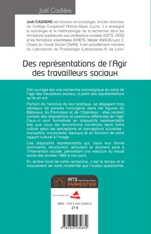 Cet ouvrage est une recherche sociologique du sens de l'agir des travailleurs sociaux, à partir des représentations qu'ils en ont. Partant de l'énoncé de leur pratique, se dégagent trois tableaux de pensée homogène dans les figures du Bâtisseur, du Promoteur et de l'Opérateur: elles rendent compte des dispositions et positions différentes de l'agir. Ceux-ci sont formalisés en dispositifs représentatifs tels que nous les rencontrons construits dans notre culture selon les perceptions et conceptions suivantes: iconophile, iconoclaste, baroque et en fonction de notre rapport culturel à l'image.Ces dispositifs représentatifs qui, dans leur forme dominante, structurent, articulent et donnent sens à l'intervention sociale, permettent une relecture du travail social des années 1960 à nos jours. En arrière-fond de cette recherche, c'est le temps et le mouvement de notre modernité que l'auteur questionne.