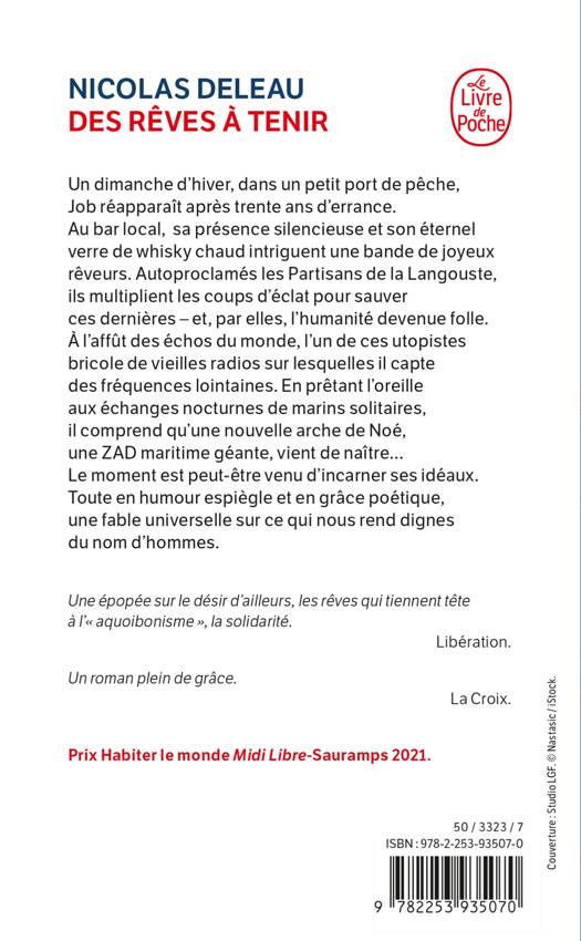 Un dimanche d’hiver, dans un petit port de pêche, Job réapparaît après trente ans d’errance. Au bar local, sa présence silencieuse et son éternel verre de whisky chaud intriguent une bande de joyeux rêveurs. Autoproclamés les Partisans de la langouste, ils cherchent comment sauver ces dernières – et, par elles, l’humanité devenue folle. À l’affût des échos du monde, l’un de ces utopistes bricole de vieilles radios sur lesquelles il capte des fréquences lointaines. En prêtant l’oreille aux échanges nocturnes de marins solitaires, il apprend l’existence d’une nouvelle Arche de Noé, une ZAD maritime géante… Le moment est peut-être venu d’incarner ses rêves.