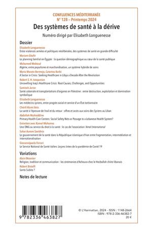 Ce numéro de Confluences Méditerranée cherche à contribuer à la réflexion sur l'évolution des systèmes de santé au Moyen-Orient et dans l'espace méditerranéen, dans une perspective associant approches d'économie politique, de santé publique et d'anthropologie.