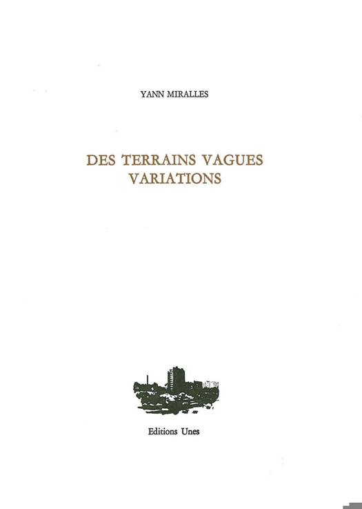 C’est un lieu qui n’a ni commencement ni fin, un lieu qu’on croise, ou qu’on traverse. Qui se répète à l’infini, d’une banlieue à l’autre, dans ces périphéries des villes, ou ce trou entre deux maisons. Une histoire de murs, de trajets quotidiens. Lieu inoccupé, laissé en friche, à l’abandon entre deux histoires, où s’entassent les petites ruines du présent : sacs plastiques, ordures et carcasses de vélos délaissés au milieu des herbes. Le terrain vague est cet endroit où la ville se défait, lieu à la frontière de la mémoire et de l’oubli des choses – maisons éboulées, cités disparues, immeubles crevés – qui s’entassent sous nos pieds. Variation en mouvement incessant, comme un travelling de cinéma, un footing, une apparition en voiture, le poème est ici à l’image du terrain vague un lieu d’ouverture, dans le béton continu des villes, et dans le langage, dans la parole à trouver. Lieu neutre et mouvant rempli d’apparitions et de souvenirs, on croise Pasolini avec l’Évangile selon Saint Matthieu et Mama Roma, les rails de Nuit et brouillard de Resnais. Visions et réminiscences fragmentées, jusque dans les angoisses délivrées de l’enfance, dans la course qui cherche à quitter l’horizontale du sol et rejoindre le dernier terrain vague du ciel.