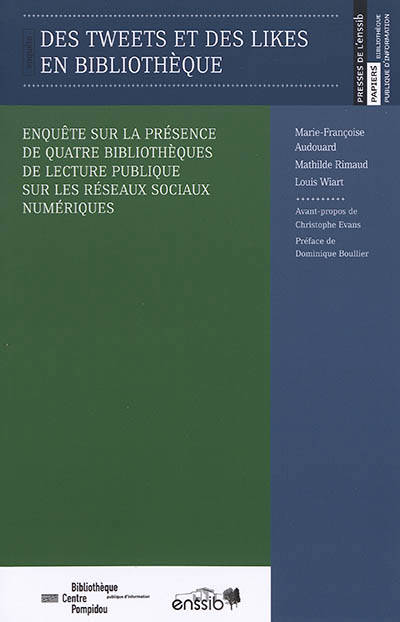 Synthèse d'entretiens menés auprès des personnels d'établissements de lecture publique qui interviennent sur les réseaux sociaux numériques. Elle met en avant une communication moins institutionnelle, des modes de travail moins hiérarchisés et la création d'une communauté d'usagers concernés par l'avenir de leur bibliothèque.