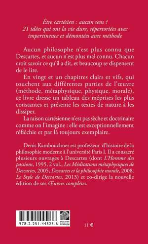 En vingt et un chapitres clairs et vifs, qui touchent aux différentes parties de l’œuvre (méthode, métaphysique, physique, morale), ce livre dresse un tableau des méprises les plus constantes et présente les textes de nature à les dissiper.