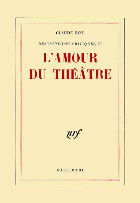 "Du Guignol du Luxembourg de mes quatre ans au T.N.P., le théâtre a été la plus constante de mes amours. Quand j'étais petit, je croyais qu'on allait au spectacle pour passer le temps. Je sais maintenant qu'on y va pour l'empêcher de passer. Les auteurs dramatiques et les metteurs en scène tentent de faire concurrence à Dieu, dont les meilleures représentations sont en général uniques et dont les bonheurs d'expression ne se répètent pas. Le monde du théâtre n'a de prix que s'il ouvre sur le théâtre du monde. J'ai essayé de le montrer dans cet essai où, à propos des poètes comiques ou tragiques, des comédiens et de l'art de mettre en scène, je m'aperçois que j'ai parlé aussi d'un autre théâtre, celui de nos destins, et d'autres comédies, celles que nous nous jouons à nous-mêmes." Claude Roy.