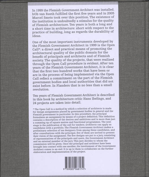 Hans Ibelings Designing for the Public Flemish Government Architect 1999¿2009 --- De twee opeenvolgende Vlaams Bouwmeesters Bob van Reeth en Marcel Smets hadden hun eigen aanpak en speerpunten. Na een decennium Vlaams Bouwmeesterschap is het tijd voor een terugblik op het instituut, de methode van de Open Oproep en de resultaten.