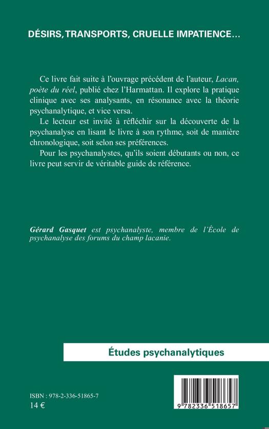 Ce livre fait suite à l'ouvrage précédent de l'auteur, Lacan, poète du réel, publié chez l'Harmattan. Il explore la pratique clinique avec ses analysants, en résonance avec la théorie psychanalytique, et vice versa. Le lecteur est invité à réfléchir sur la découverte de la psychanalyse en lisant le livre à son rythme, soit de manière chronologique, soit selon ses préférences. Pour les psychanalystes, qu'ils soient débutants ou non, ce livre peut servir de véritable guide de référence.