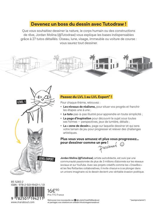 Que vous souhaitiez dessiner la nature, le corps humain ou des constructions de rêve, Jordan Molina (@Tutodraw) vous explique les bases indispensables grâce à 27 tutos détaillés. Oiseau, lune, visage, immeuble ou voiture de course : vous saurez tout dessiner.