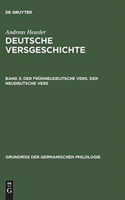 7. Deutsche Versgeschichte, Band 3, Der frühneudeutsche Vers. Der neudeutsche Vers