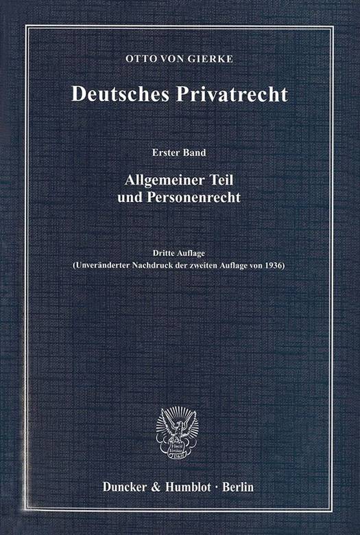 Das »Deutsche Privatrecht«, dessen drei Bände »Allgemeiner Teil und Personenrecht«, »Sachenrecht« und »Schuldrecht« in den Jahren 1895, 1905 und 1917 im Druck erschienen und dessen vierter Band »Familienrecht« erst 2010 aus dem Nachlaß herausgegeben wurde, ist nach dem »Genossenschaftsrecht« das zweite und letzte monumentale Hauptwerk Ottos von Gierke, des wohl bedeutendsten Repräsentanten der Germanistik des späten 19. Jh. Schon zu seiner Zeit als führender Dogmatiker anerkannt, bedurfte es der sozial- und rechtspolitischen Erfahrungen des 20. Jahrhunderts, um das volle Ausmaß seiner zukunftsweisenden privat- und sozialrechtlichen Konzeptionen zu erfassen.