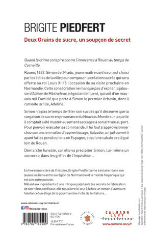 Rouen, 1632. Simon del Prado, jeune maître confiseur, est choisi par les édiles de la ville pour composer la création sucrée qui sera offerte au roi Louis XIII à l’occasion de sa visite prochaine en Normandie. Cette consécration ne manque pas d’exciter la jalousie d’Adrien de Mèchefeux, négociant influent, qui voit d’un mauvais oeil l’amitié que porte à Simon le premier échevin, dont il convoite la fille, Adeline.