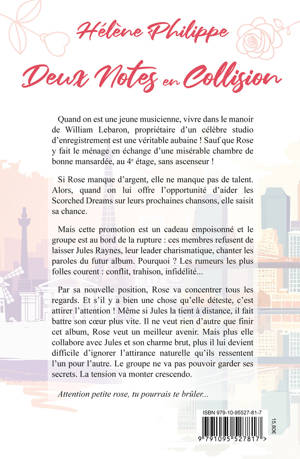 Quand on est une jeune musicienne, vivre dans le manoir de William Lebaron, propriétaire d’un célèbre studio d’enregistrement est une véritable aubaine ! Sauf que Rose y fait le ménage en échange d’une misérable chambre de bonne mansardée, au 4e étage, sans ascenseur ! Si Rose manque d’argent, elle ne manque pas de talent. Alors, quand on lui offre l’opportunité d’aider les Scorched Dreams sur leurs prochaines chansons, elle saisit sa chance. Mais cette promotion est un cadeau empoisonné et le groupe est au bord de la rupture : ces membres refusent de laisser Jules Raynes, leur leader charismatique, chanter les paroles du futur album. Pourquoi ? Les rumeurs les plus folles courent : conflit, trahison, infidélité... Par sa nouvelle position, Rose va concentrer tous les regards. Et s’il y a bien une chose qu’elle déteste, c’est attirer l’attention ! Même si Jules la tient à distance, il fait battre son cœur plus vite. Il ne veut rien d’autre que finir cet album, Rose veut un meilleur avenir. Mais plus elle collabore avec Jules et son charme brut, plus il lui devient difficile d’ignorer l’attirance naturelle qu’ils ressentent l’un pour l’autre.