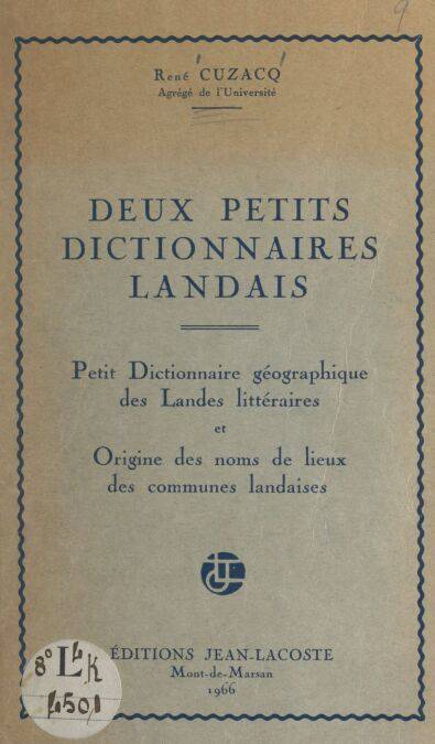 Petit dictionnaire géographique des Landes littéraires et Origine des noms de lieux des communes landaises