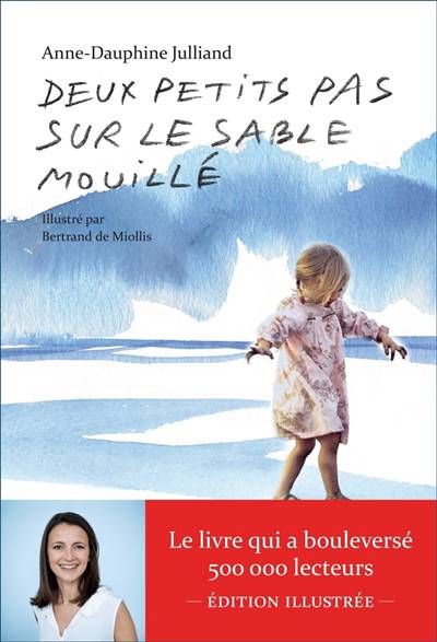 "Le chevalet est installé, les pinceaux sont préparés, la palette est garnie. Bertrand le talentueux s'exécute. Peindre Thaïs, c'est son idée. L'immortaliser telle qu'elle est aujourd'hui, belle, si belle. La peinture est délicate. Elle peut effacer les tuyaux disgracieux, gommer les machines imposantes, pour ne garder que l'essentiel : une jolie fille endormie sur un lit". En écrivant ces mots dans son livre Deux petits pas sur le sable mouillé, Anne-Dauphine Julliand n'avait pas imaginé qu'un jour son ami Bertrand de Miollis illustrerait l'ensemble de son livre. Tout en délicatesse et suggestion, il réussit à donner des couleurs à cette formidable histoire d'amour et de vie.