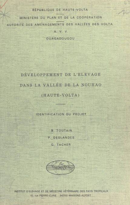 Ce ouvrage présente de manière très détaillée le projet d'aménagement de la vallée de la Nouhao en Haute-Volta, afin que s'y installent des populations d’agriculteurs traditionnels qui y développeront l’élevage extensif maintenant que la zone a été libérée de l’onchocercose : améliorer l’utilisation des ressources pastorales et les conditions d’élevage pour augmenter la production de viande et de lait - ce qui améliorera le revenu des éleveurs ; réalisation d’aménagements pastoraux, d’actions sanitaires et zootechniques ; mise en place d'un encadrement. L'objectif à terme est de réduire les sorties définitives de troupeaux au Togo ou au Ghana, d'augmenter le cheptel, de favoriser la commercialisation.