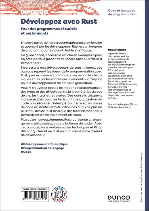 Vous y trouverez toutes les notions indispensables : des types et des affectations à la propriété, les durées de vie, les traits et les crates. Des conseils d'experts indispensables pour les tests unitaires, la gestion du code non sécurisé, l'interopérabilité avec les bases de code existantes et l'utilisation des outils de plus en plus robustes de Rust ainsi que des tutoriels vidéo vous permettront d'être rapidement efficace.