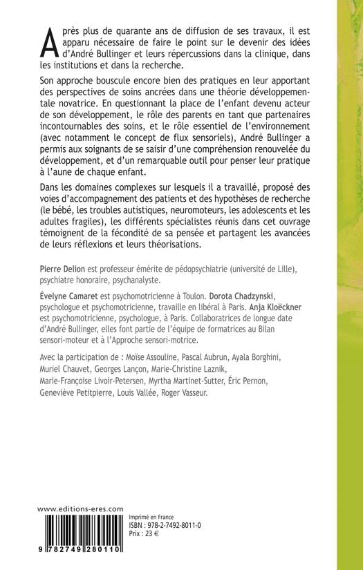 Les différents spécialistes intéressés par les travaux et les recherches d’André Bullinger ont, chacun avec leur spécificité, dégagé les pistes qu’ils continuent à déployer dans leurs pratiques cliniques et leurs théorisations. Dans chacun des quatre domaines complexes sur lesquels AB a travaillé, proposé des voies d’accompagnement des patients et des hypothèses de recherche, ils témoignent de la fécondité de sa pensée et font à la fois l’état de leurs réflexions et leurs théorisations. Ils montrent que la dynamique de recherche impulsée par AB est toujours à l’œuvre et ses retombées sont aujourd’hui multiples dans les champs des troubles développementaux quel qu’en soient les formes et les modalités.