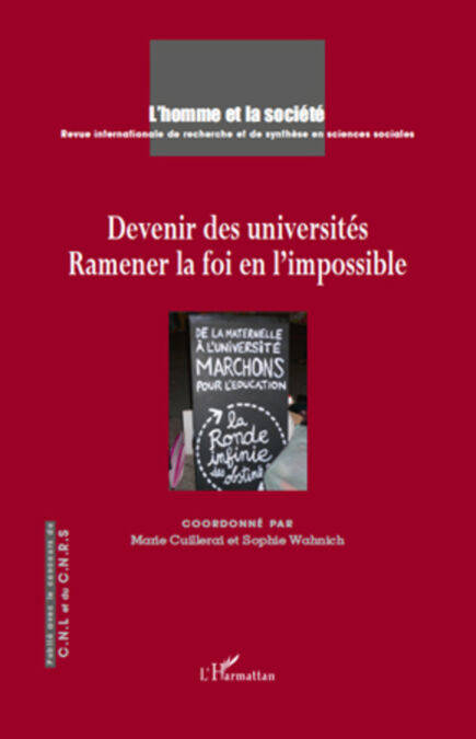 L'université et la recherche sont les points de départ de ce numéro de L'homme et la société. Université publique mise à mal aujourd'hui en France dans ce qui s'annonce comme réforme décisive. Recherche publique dont la mort est régulièrement annoncée. Une grande confusion caratérise la réception de la Loi LRU dans l'université. Ce numéro tente de faire le point sur cette nouvelle norme et sur la foi en l'impossible d'un autre rapport à l'étude, au regard de son historicité.