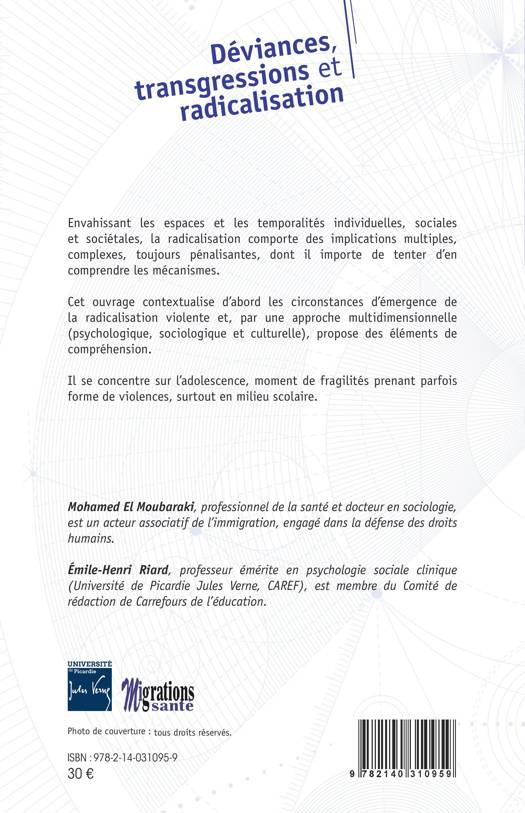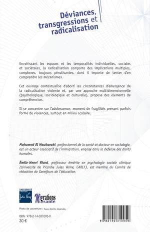 Envahissant les espaces et les temporalités individuelles, sociales et sociétales, la radicalisation comporte des implications multiples, complexes, toujours pénalisantes, dont il importe de tenter d'en comprendre les mécanismes. Cet ouvrage contextualise d'abord les circonstances d'émergence de la radicalisation violente et, par une approche multidimensionnelle (psychologique, sociologique et culturelle), propose des éléments de compréhension. Il se concentre sur l'adolescence, moment de fragilités prenant parfois forme de violences, surtout en milieu scolaire.