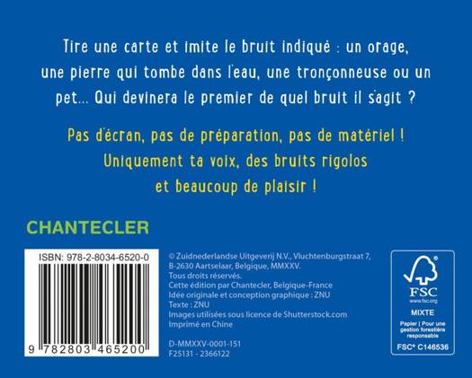 Les règles du jeu sont très simples. Un joueur tire une carte et imite le bruit indiqué : une pierre qui tombe dans l'eau, une tronçonneuse ou un pet… Les autres joueurs essaient de deviner de quel bruit il s'agit et le plus rapide marque un point !