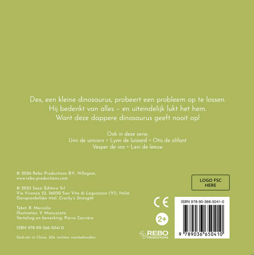 Dex, een kleine dinosaurus, probeert een probleem op te lossen. Hij bedenkt van alles – en uiteindelijk lukt het hem. Want deze dappere dinosaurus geeft nooit op!