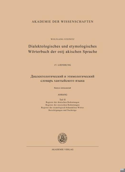 Dialektologisches und etymologisches Wörterbuch der ostjakischen Sprache 15. Lieferung (Abschluß)