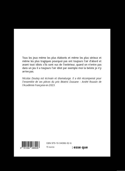 Nicolas Doutey est écrivain et dramaturge. Il a été récompensé pour l’ensemble de ses pièces du prix Béatrix Dussane - André Roussin de l’Académie Française en 2023.