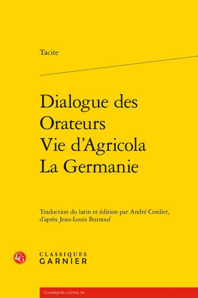 Outre les deux sommes remarquables que sont les Histoires et les Annales, Tacite est l'auteur de plusieurs opuscules. Dans la veine des dialogues cicéroniens, il questionne l'évolution de l'éloquence à Rome. S'y joue - déjà - une querelle des Anciens et des Modernes. Tacite avait fait un bon mariage. À la mort de son beau-père, Agricola, brillant général et homme d'État, il rédige la biographie de celui qu'il considère comme un modèle de vertu publique comme privée. C'est aussi un des seuls exposés sur la Bretagne, dont le général poursuivit la conquête. L'historien attire enfin l'attention sur les étendues de la Germanie. Il propose une étude des peuples barbares, rudes mais libres, de leurs moeurs et des territoires au-delà du limes.