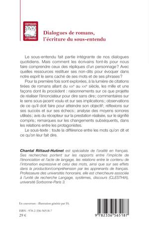 Le sous-entendu fait partie intégrante de nos dialogues quotidiens. Mais comment les écrivains font-ils pour nous faire comprendre ceux des répliques d'un personnage ? Avec quelles ressources restituer ses non-dits pour évoquer dans notre esprit le sens caché de ses mots et de ses phrases ? Pour la première fois sont explorées, à la lumière de citations tirées de romans allant du XIXe au XXIe siècle, les mille et une façons dont ils procèdent raisonnements sur ce que projette de réaliser l'énonciateur pour dire sans dire; commentaires sur le sens sous-jacent voulu et sur ses implications; observations de ce qu'il doit faire pour atteindre son objectif; réflexions sur ses succès et sur ses échecs; analyse des moyens sonores utilisés; avis du récepteur sur la prestation réalisée, sur le signifié compris; remarques sur les changements subséquents, dans les relations entre les protagonistes. Le sous-texte toute la différence entre les mots qu'on dit et ce qu'on leur fait dire.