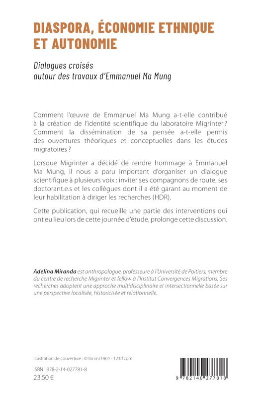 Comment l’oeuvre de Emmanuel Ma Mung a-t-elle contribué à la création de l’identité scientifique du laboratoire Migrinter ? Comment la dissémination de sa pensée a-t-elle permis des ouvertures théoriques et conceptuelles dans les études migratoires ? Lorsque Migrinter a décidé de rendre hommage à Emmanuel Ma Mung, il nous a paru important d’organiser un dialogue scientifique à plusieurs voix : inviter ses compagnons de route, ses doctorant.e.s et les collègues dont il a été garant au moment de leur habilitation à diriger les recherches (HDR). Cette publication, qui recueille une partie des interventions qui ont eu lieu lors de cette journée d’étude, prolonge cette discussion.