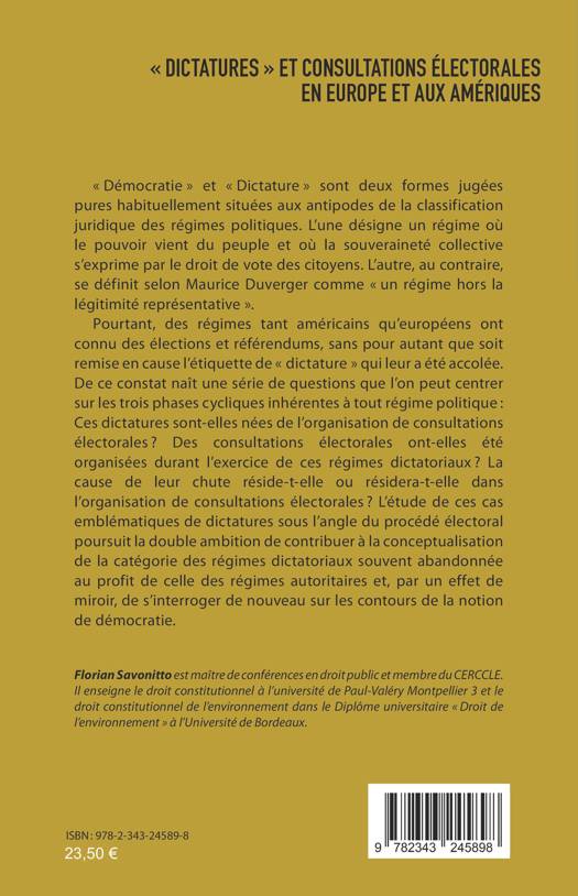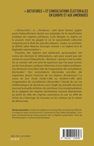 « Démocratie » et « Dictature » sont deux formes distinctes et antagonistes de régimes politiques. L’une désigne un régime où le pouvoir vient du peuple et où la souveraineté collective s’exprime par le droit de vote des citoyens. L’autre, au contraire, se définit selon Maurice Duverger comme « un régime hors la légitimité représentative ». Pourtant, des régimes américains et européens ont connu des élections et référendums, sans que soit remise en cause leur étiquette de « dictature ». De ce constat naît une série de questions : Ces dictatures sont-elles nées de l’organisation de consultations électorales ? Des consultations électorales ont-elles été organisées dans des régimes dictatoriaux ? La cause de leur chute réside-t-elle ou résidera-t-elle dans l’organisation de consultations électorales ? L’étude de cas emblématiques permet de mieux conceptualiser la catégorie des régimes dictatoriaux et de s’interroger sur celle de démocratie.