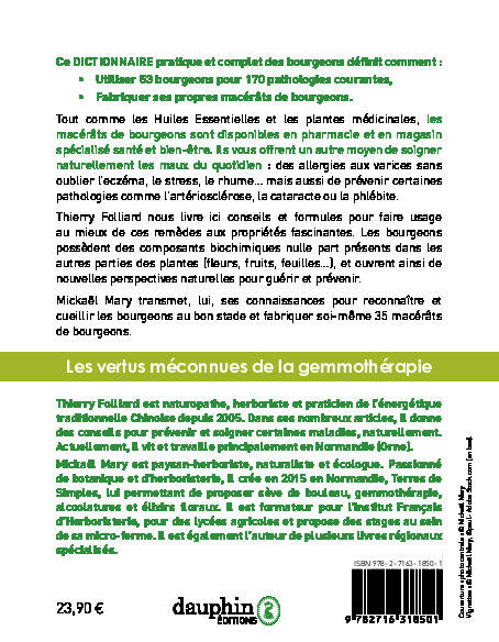Thierry Folliard nous livre ici conseils et formules pour faire usage au mieux de ces remèdes aux propriétés fascinantes. Les bourgeons possèdent des composants biochimiques nulle part présents dans les autres parties des plantes (fleurs, fruits, feuilles…), et ouvrent ainsi de nouvelles perspectives naturelles pour guérir et prévenir.
