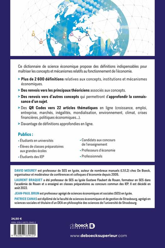 Ce dictionnaire de science économique propose des définitions indispensables pour maîtriser les concepts et mécanismes relatifs au fonctionnement de l’économie.