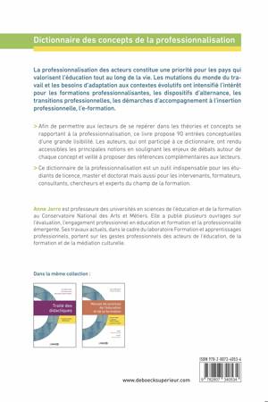 Ce dictionnaire de la professionnalisation est un outil indispensable pour les étudiants de licence, master et doctorat, il est aussi un instrument pour les intervenants (formateurs, consultants, chercheurs, experts) du champ de la formation.
