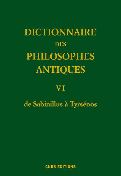 Ce sixième et avant-dernier tome regroupe 373 notices, de Sabinillus à Tyrsénos. Parmi les philosophes les plus importants traités dans ce volume, citons Sénèque, Sextus Empiricus, Simplicius, Socrate, Speusippe, Straton de Lampsaque, Synésius de Cyrène, Thalès, Théophraste, Thrasyllos, etc.