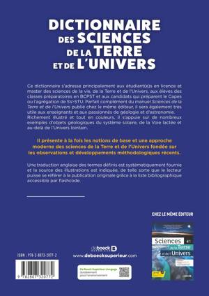 Sans équivalent sur le marché, ce dictionnaire des Sciences de la Terre et de l’Univers rassemble, en près de 3000 entrées souvent inédites, toutes les définitions les plus récentes en matière de Géophysique, Géochimie, Paléontologie, Pétrologie et Planétologie.