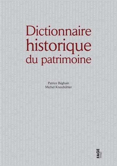 Le Dictionnaire historique du patrimoine, propose une synthèse inédite sur l'histoire du développement du sentiment et de la conscience du patrimoine. Consacrées à une centaine de personnalités, une quarantaine de sites ou de monuments et quatre-vingts thématiques ou institutions, les deux cent vingt-six notices de ce Dictionnaire, riches de nombreuses citations et assorties de références bibliographiques, explorent les différentes étapes de l'investissement du champ social, politique et culturel par ce processus de patrimonialisation et constituent autant d'études de cas illustrant l'ancrage du patrimoine dans la société. Si l'ouvrage tient compte des liens étroits qui associent la notion de patrimoine à l'histoire ainsi qu'à l'histoire de l'art et de l'architecture et prend en considération les apports d'autres sciences humaines – anthropologie, philosophie, sociologie, économie... –, il n'en vise pas moins à mettre en évidence la voie singulière empruntée au cours de son émergence progressive, nourrie du dialogue entre la mémoire et sa charge d'affect et l'histoire, forte de sa visée scientifique. Le choix de la forme du dictionnaire, complété par un système de renvoi d'une notice à l'autre et par deux index – consacrés, l'un aux personnes, l'autre aux sites et monuments mentionnés – permet à chacun de conduire sa propre lecture. Patrice Béghain, ancien directeur régional des affaires culturelles et ancien adjoint à la culture et au patrimoine de la Ville de Lyon, et Michel Kneubühler, chargé d'enseignement en politiques culturelles et longtemps impliqué dans l'organisation des Journées européennes du patrimoine, auteurs de plusieurs ouvrages dans ce domaine.