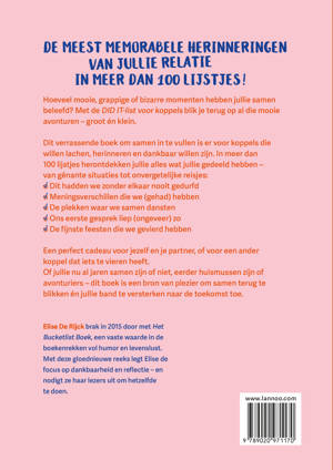 Dit verrassende boek om samen in te vullen is er voor koppels die willen lachen, herinneren en dankbaar willen zijn. In meer dan 100 lijstjes herontdekken jullie alles wat jullie gedeeld hebben - van gênante situaties tot onvergetelijke reisjes: