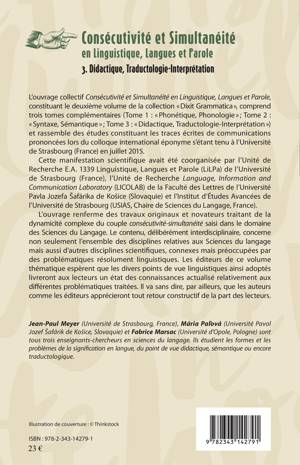 Sont présentés ici des travaux originaux et novateurs traitant de la dynamicité complexe du couple consécutivité-simultanéité saisi dans le domaine des Sciences du Langage. Le contenu, délibérément interdisciplinaire, concerne non seulement l'ensemble des disciplines relatives aux Sciences du langage mais aussi d'autres disciplines scientifiques, connexes mais préoccupées par des problématiques résolument linguistiques.