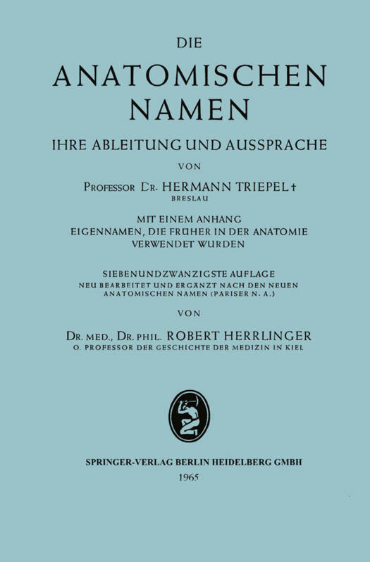 Sprache. Bei der Neubearbeitung dieses Wörterbuches wurden deshalb viele diesbezüglichen Hinweise gestrichen. TRIBPEL selbst betontl, es sei nicht seine Absicht gewesen, eine Geschichte der anatomischen Namen zu schreiben. Dazu wären übrigens Spezialunter- suchungen erforderlich gewesen, die wohl über seine Möglichkeiten gegangen wären. Er hat aber doch nicht der Versuchung widerstehen können, zahl- reiche historische Anmerkungen einzuflechten, wobei er sich vor allem HYBTLB "Onomatologia anatomie&" (1880) bediente. Bei der Neubearbei- tung stand ich vor der Frage, ob alle diese im einzelnen so reizvollen, aber im ganzen doch nur fragmentarischen geschichtlichen Hinweise zu streichen seien, denn sie sind zum Teil durch neuere und bessere Erkenntnisse über- holt, oder ob nicht dem Leser mehr damit gedient wäre, wenn sie durch die eine oder andere historische Be111erkung vermehrt würden. Ich habe mich zur Erweiterung entschlossen, die freilich ebenso willkürlich gehandhabt werden mußte wie vor 50 Jahren von TRIBPEL. Durch bibliographische Nachweise - auch TRIEPEL hatte von Fall zu Fall seine Quelle namentlich genannt - soll es dem geschichtlich interessierten Leser jedoch leicht gemacht werden, zu erfahren, welche termini anatomici etymologisch und historisch eingehender bearbeitet wurden und wo darüber nachzulesen ist (s. Abkürzungen S. 7). Würzburg, im Juni 1956. R. HEBRLINGER Vorwort zur 27. Auflage Auch in dieser Auflage sind einige . Änderungen, die als Verbesserungen l{edacht sind, vorgenommen worden. Ich verdanke die meisten der sorg- Iältigen Lektüre durch Rezensenten. Besonderen Dank schulde ich Herrn Professor Dr. phil. K.