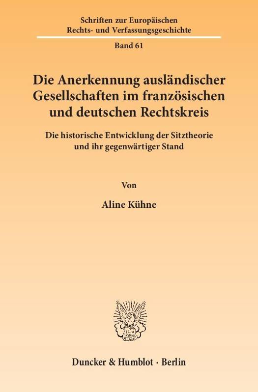 Dies nahm die Autorin zum Anlass, die Entwicklung der Sitztheorie im deutschen und französischen Rechtskreis aus rechtshistorischer Perspektive zu analysieren. Anhand der gewonnenen Erkenntnisse bewertet sie aktuelle Rechtsentwicklungen in Deutschland, Frankreich und Belgien.