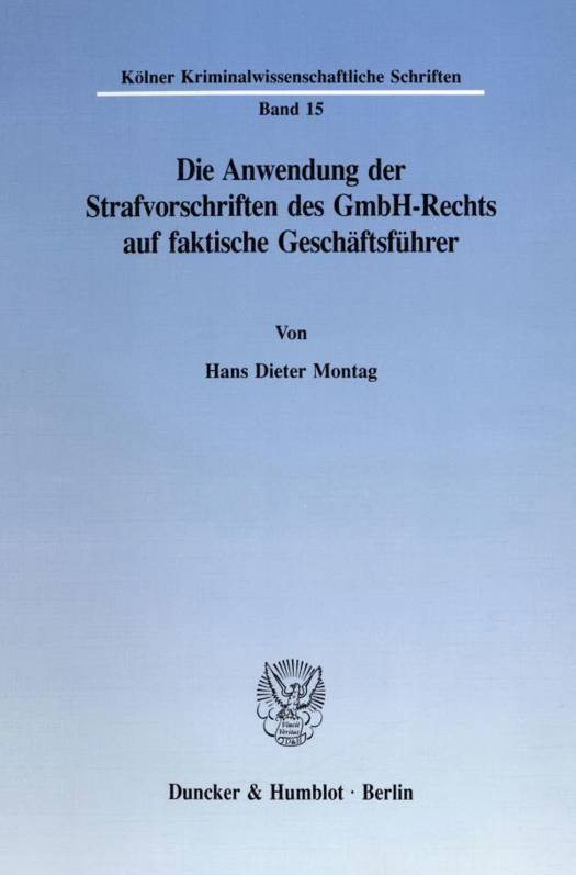 Die vorliegende Arbeit befaßt sich mit der für Wissenschaft und Praxis gleichermaßen interessanten Frage, inwieweit faktische Geschäftsführer Normadressaten der sogenannten Geschäftsführerdelikte des GmbHG sein können, sich also etwa wegen Konkursverschleppung strafbar machen können.