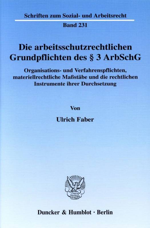 Das deutsche Arbeitsschutzrecht ist durch das Arbeitsschutzgesetz (ArbSchG) neugeordnet und modernisiert worden. Ein zentrales Ziel des ArbSchG liegt in der Stärkung der Eigenverantwortung der Betriebe für die Sicherheit und Gesundheit der Beschäftigten.Der Autor weist anhand der Grundpflichten des 3 ArbSchG nach, daß der betriebliche Arbeits- und Gesundheitsschutz als Managementaufgabe auszugestalten ist, an der neben dem Arbeitgeber und den besonderen Funktionsträgern des Arbeitsschutzes auch Führungskräfte, Betriebsräte sowie die einzelnen Arbeitnehmer mitzuwirken haben. Es werden im einzelnen die rechtlichen Anforderungen der neuen Verfahrens- und Organisationspflichten vorgestellt, die prägend für das betriebliche Arbeitsschutzmanagement sind. Die Arbeit wird abgerundet durch eine eingehende Analyse der rechtlichen Instrumente zur Durchsetzung der Grundpflichten des 3 ArbSchG. Ulrich Faber problematisiert auf diesem Wege verallgemeinerungsfähig wichtige Rechtsfragen, die sich aus der aktuellen Debatte um die Deregulierung des Arbeitsschutzrechts ergeben.