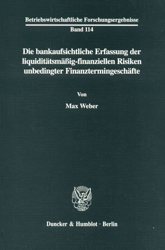 Unbedingte Finanztermingeschäfte - Forwards, Futures und Finanzswaps - haben sich zu einem wichtigen Geschäftsfeld für Kreditinstitute entwickelt. Aus Sicht der Bankenaufsicht wirft dies grundsätzlich die Frage auf, mit welchen liquiditätsmäßig-finanziellen Risiken unbedingte Finanztermingeschäfte verbunden sind und - um der Funktionsfähigkeit der Kreditwirtschaft willen - in welcher Form und in welchem Ausmaß eine Begrenzung dieser Risiken zu erfolgen hat.Der Verfasser diskutiert nach einer kurzen Einführung in die Geschäfte selbst und in die Aufgaben der Bankenaufsicht zunächst die bankaufsichtsrechtlich relevanten Risiken (Bonitätsrisiken, Marktpreisrisiken, Risiken aus rechtlichen und ökonomischen Rahmenbedingungen) der Geschäfte. Dabei versucht er Gemeinsamkeiten und Unterschiede zwischen den Spielarten unbedingter Finanztermingeschäfte aufzuzeigen. Auf Grundlage dieser Ergebnisse entwickelt Max Weber Risikobegrenzungsregeln. Diese unterscheiden sich konzeptionell von den zur Zeit der Abfassung geltenden Begrenzungsregeln (Grundsatz I, Grundsatz Ia i.d.F. der 5. KWG-Novelle), da sie nicht wie diese auf die Verhinderung von Vermögensverlusten, sondern auf eine Stabilisierung der Ertragskraft der Kreditinstitute abzielen. Dort, wo die vorgeschlagenen Begrenzungsregeln Ähnlichkeiten mit denen der EU-Kapitaladäquanzrichtlinie aufweisen, erfolgt eine kritische Gegenüberstellung beider Regelungen.