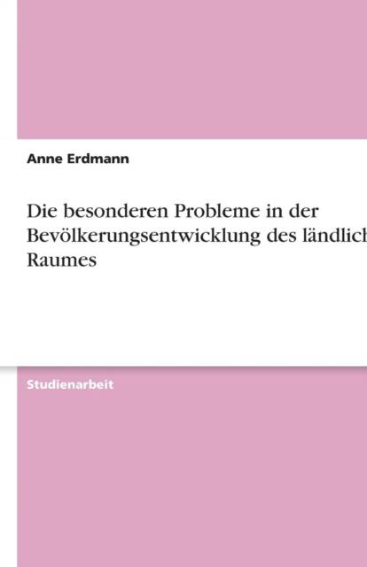 Studienarbeit aus dem Jahr 2001 im Fachbereich Geowissenschaften / Geographie - Bevölkerungsgeographie, Stadt- u. Raumplanung, Note: 2, Ernst-Moritz-Arndt-Universität Greifswald (Institut für Geographie), Veranstaltung: Seminar ländlicher Raum/ Strukturentwicklung und Perspektiven, 5 Quellen im Literaturverzeichnis, Sprache: Deutsch, Abstract: Das Thema dieser Seminararbeit ist die Problematik der Bevölkerungsentwicklung in Deutschland mit Bezug auf den ländlichen Raum. Dabei wird auf die geschichtlichen Hintergründe eingegangen, sowie ein Überblick über die Besonderheiten in der Bevölkerungsentwicklung in Mecklenburg - Vorpommern gegeben, wo sich gegenwärtig der auffälligste demographische Prozess im ländlichen Raum, abzeichnet. [...]